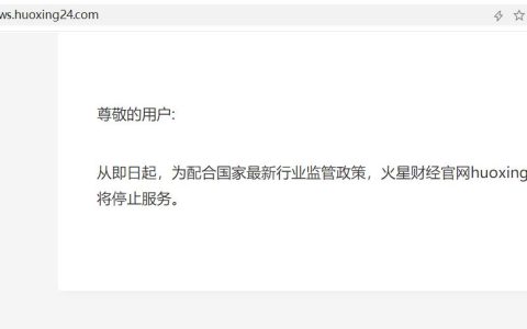 火星财经官方网站为什么关停了?小编今晚打开火星财经的官方,提示:“尊敬的用户:从即日起,为配合国家最新行业监管政策,火星财经官网huoxing24.com将停止服务。”