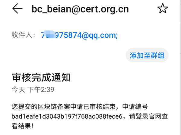 从国家网信办官方网站《区块链信息服务备案管理系统》登陆相关企业备案后后台,可以看到通过项目的状态已从“审核中”变为“已通过”。