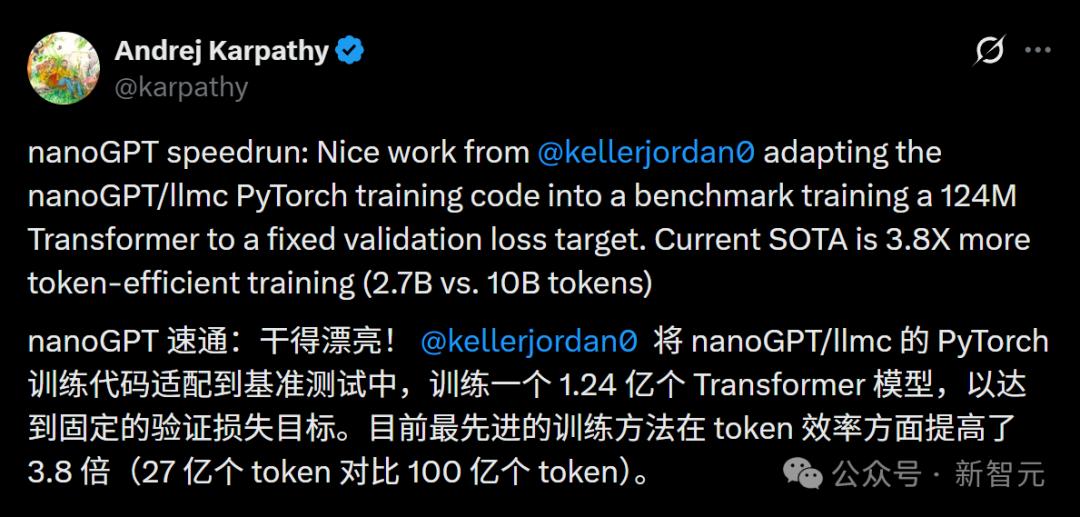 再后来,Keller的一项表现亮眼的工作「NanoGPT speed run」,直接改变了全新的研究范式,这不仅让特斯拉AI负责人Karpathy称赞不已,还引起了OpenAI的注意。