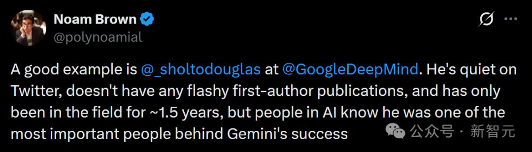 他在X上十分低调,从未以一作身份发表过任何引人注目的论文,入行时间也只有一年半,然而,他却是Gemini成功的背后关键人物。