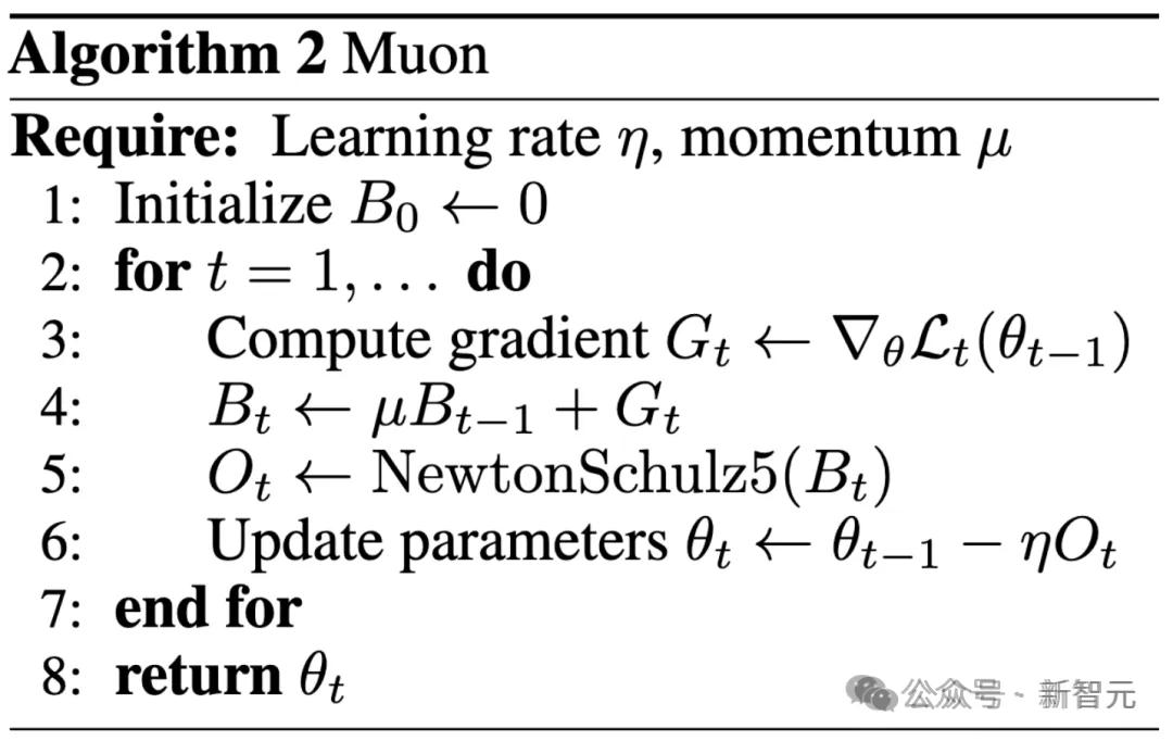 Muon,是一种为神经网络2D参数隐藏层设计的优化器。它的核心思想是,SGD-动量法(SGD-momentum)生成的更新矩阵,通过Newton-Schulz迭代进行正交化处理,生成接近于半正交矩阵的更新,从而提升训练效率。