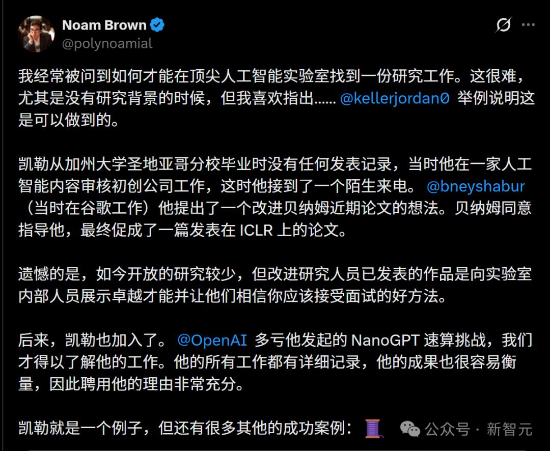 【新智元导读】他没博士、没论文,却靠公开改进论文和跑基准测试,直接打动大佬、入职OpenAI!Noam Brown亲证:行动力和开源项目,才是逆袭顶级AI实验室的真正通行证。