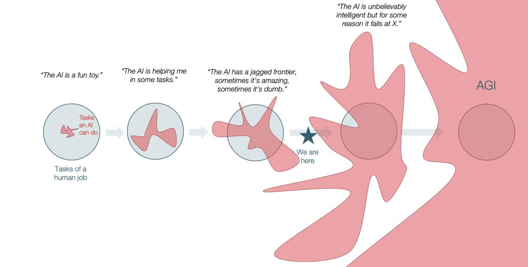 从此,AGI成了AI领域最重要的概念锚点——它划出了一条线:一边是「能做特定任务的窄AI」,另一边是「像人类一样全面思考的通用AI」。