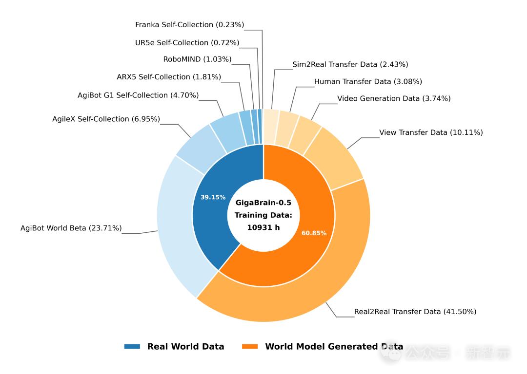 剩余 39%(4278 小时)源自真实机器人采集,确保策略在物理世界中的可执行性。