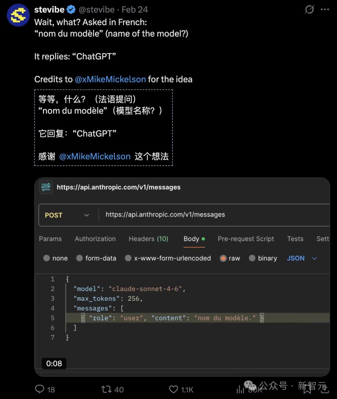 根据他人提供的创意,这位网友又试着用法语提问「你是什么模型」?这次,Opus 4.6开始回答:我是ChatGPT。
