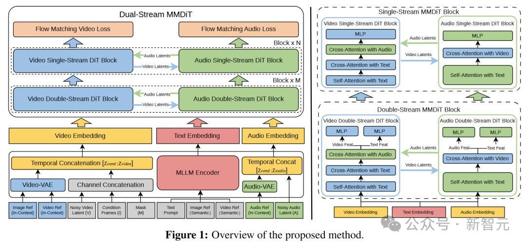 简单来说,视频在生成的每一步都在「听」音频在做什么,音频在生成的每一步都在「看」视频在做什么——它们不是各干各的、最后拼在一起,而是从一开始就在互相引导、协同生长。