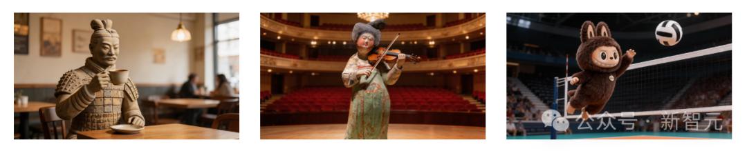 输入以下首帧,我们就分别得到了喝咖啡的兵马俑、拉小提琴的陶俑和打排球的labubu。