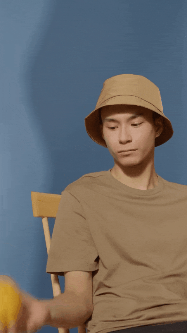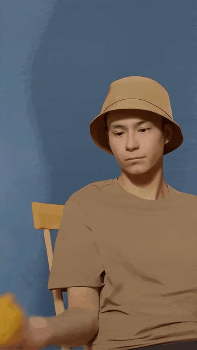 原本只是一个男人坐在原地抛着橘子,画面像监控一样静止、没有起伏。
