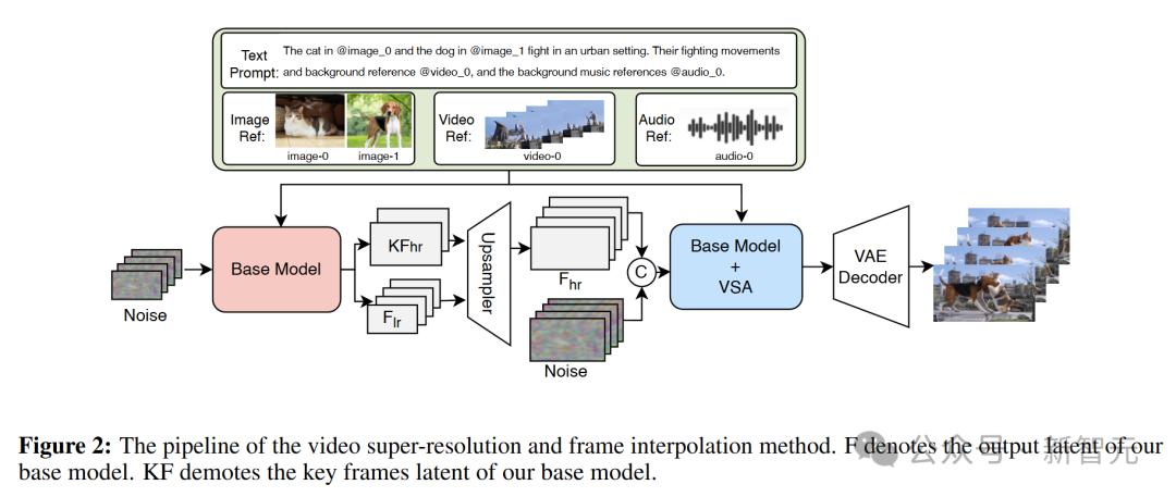 SkyReels-V4的工程团队设计了一套巧妙的「低分辨率全序列 + 高分辨率关键帧」联合生成策略:模型先快速生成低分辨率的完整视频和高分辨率的关键帧,再通过专门的超分辨率和帧插值模块重构最终的高质量视频。