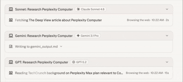 更具体讲,Perplexity Computer是一个极其强大的多模态系统,通过精密的编排,让多个AI智能体并行工作。