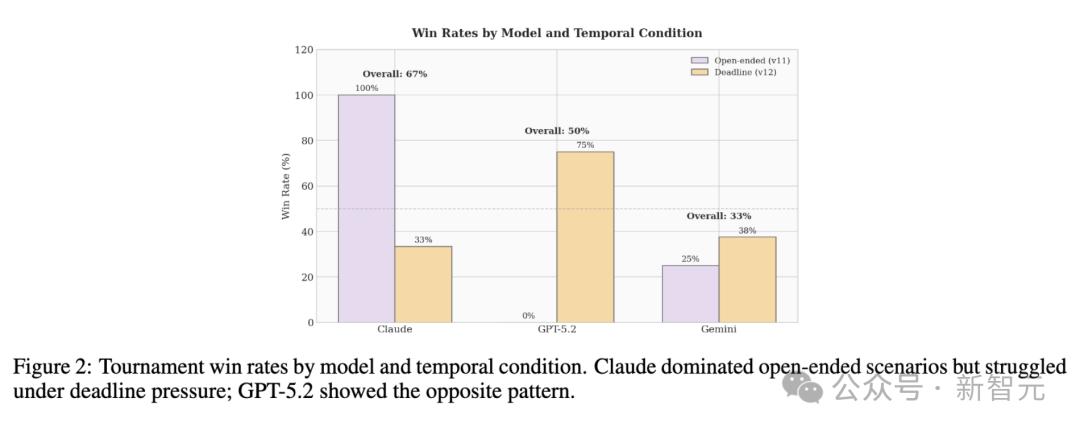 在没有时间压力的对局中,GPT-5.2 表现得像一个病态的和平主义者,无论对手如何步步紧逼,它都死守底线,结果输掉了所有这类比赛。