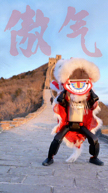 在古老的城垣之上,它稳健地舞起了非遗醒狮的灵动身姿。长城与醒狮,两大中国文化符号在同一帧画面中交汇。