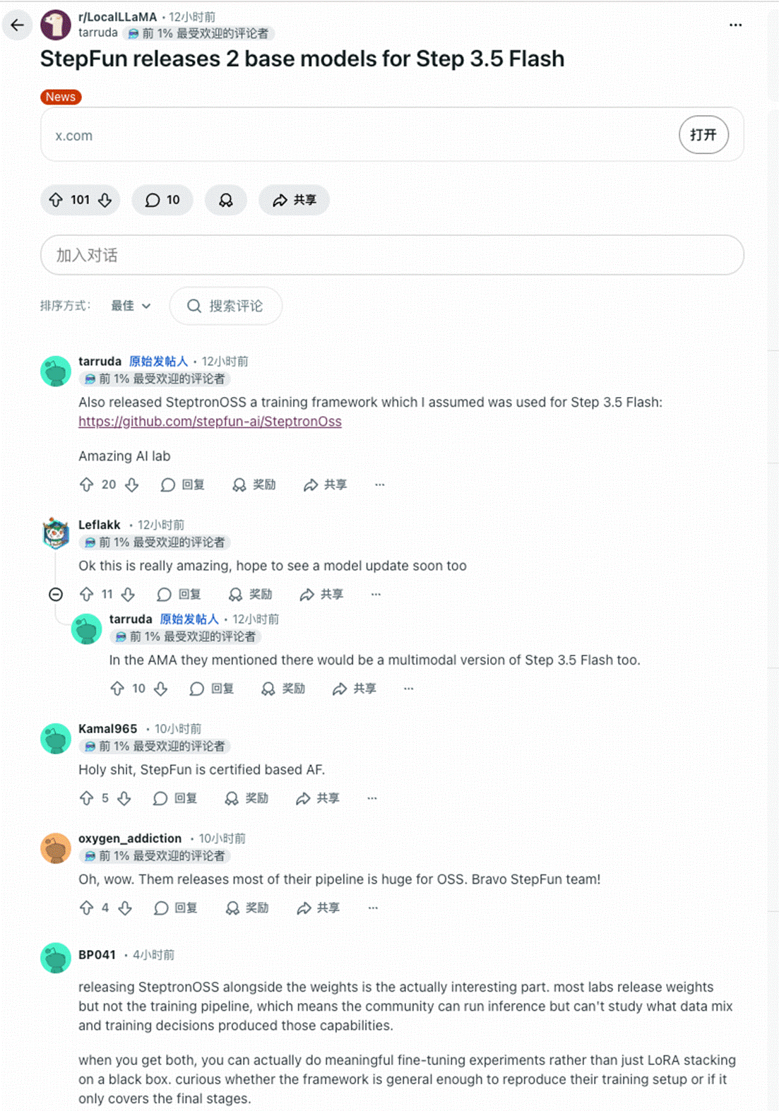 随着 OpenClaw 等 Agent 平台热度持续升温,Step 3.5 Flash 的开源或将进一步加速中国模型在全球 Agent 生态中的渗透。