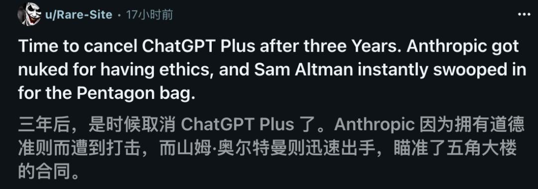 这不还有人,在同一时间,取消了ChatGPT订阅了Claude。