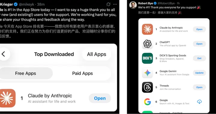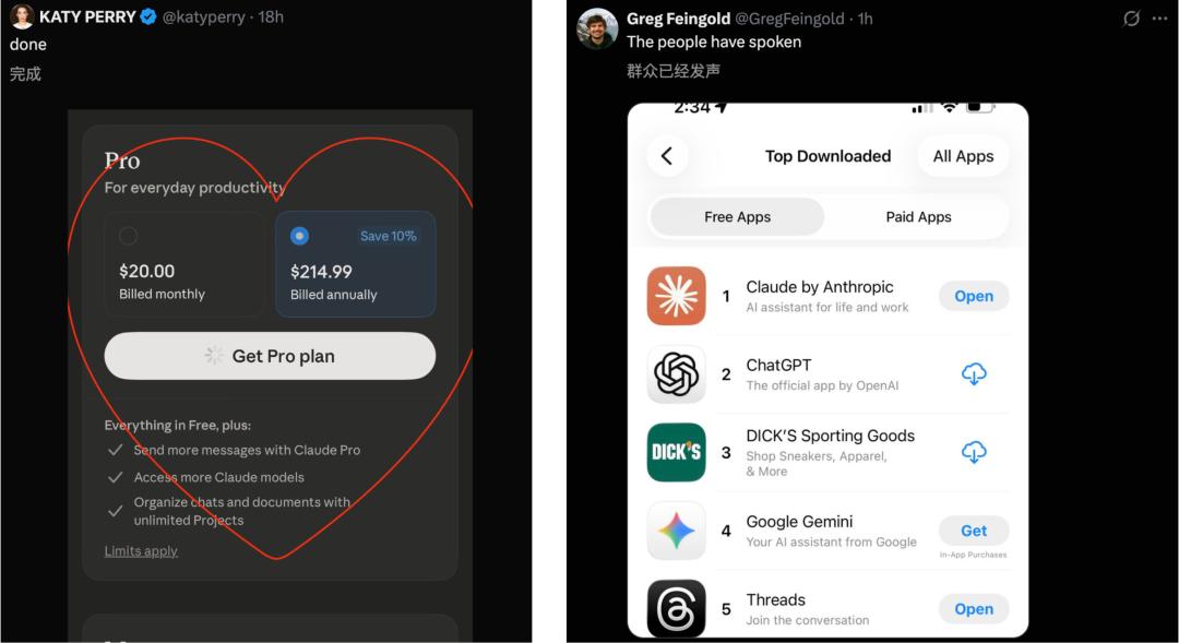 还有一大批人,用最直接的行动——下载、订阅,表示对Claude的支持。