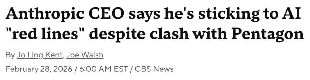 昨天,五角大楼下达的「最后通牒」时间已过,Anthropic不但没有妥协,还再次重申坚定的两条「红线」: