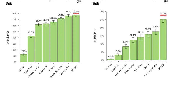 结果令人清醒——GPT-5.2在奥赛级结构化题目上拿下77%,但面对真正开放式的科研任务,成绩骤降至25%。