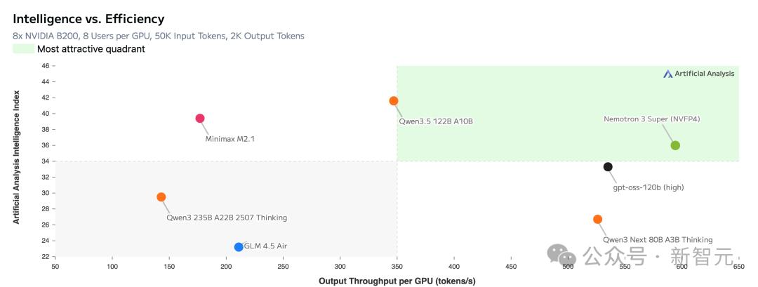 结果,与上一代Nemotron Super模型相比,吞吐量提升高达5倍,准确率提升高达2倍。