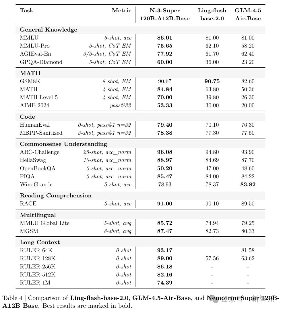 最终练出来的「基础模型」,在MMLU上跑到86.01,MMLU-Pro 75.65,MATH 84.84,把同等体量的顶流模型远远甩在了身后。