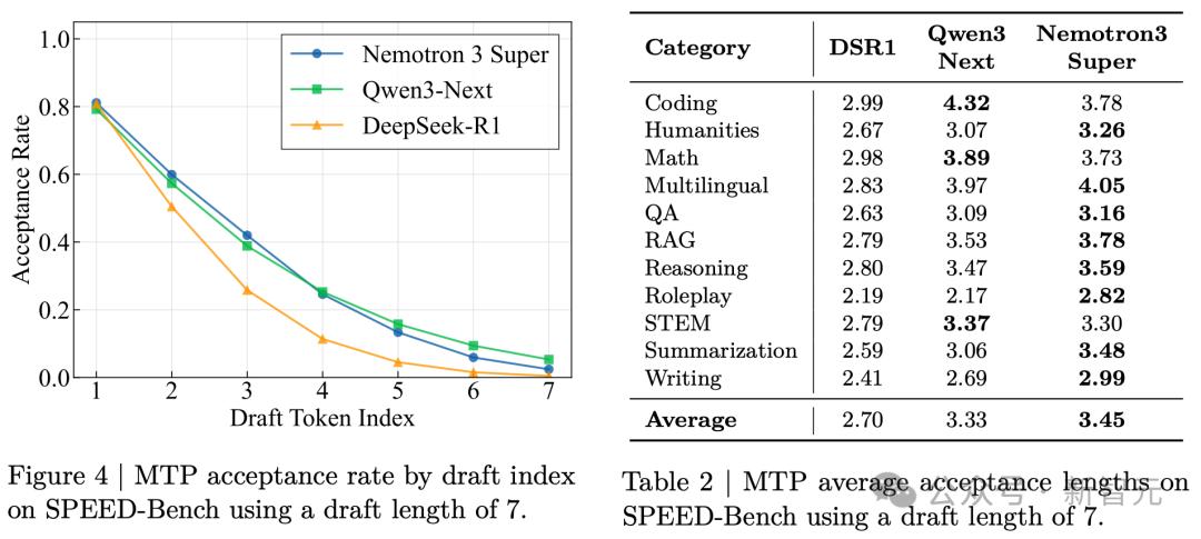Nemotron 3 Super还加入了一个大杀器:多Token预测(MTP),模型质量和推理效率一举两得。