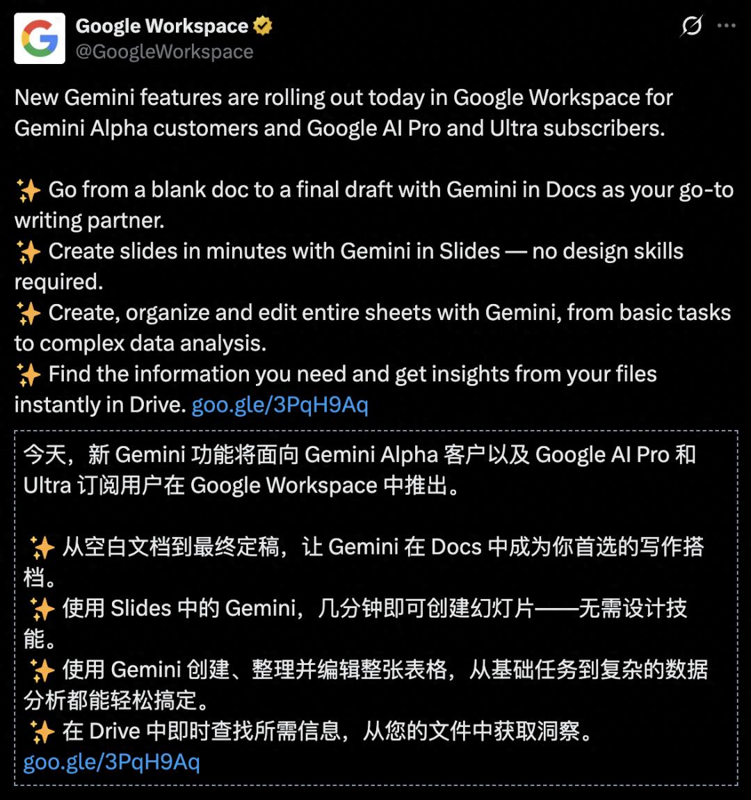它更像是谷歌在明确宣告:Workspace的未来,不是「接入Gemini」,而是「成为Gemini优先」。