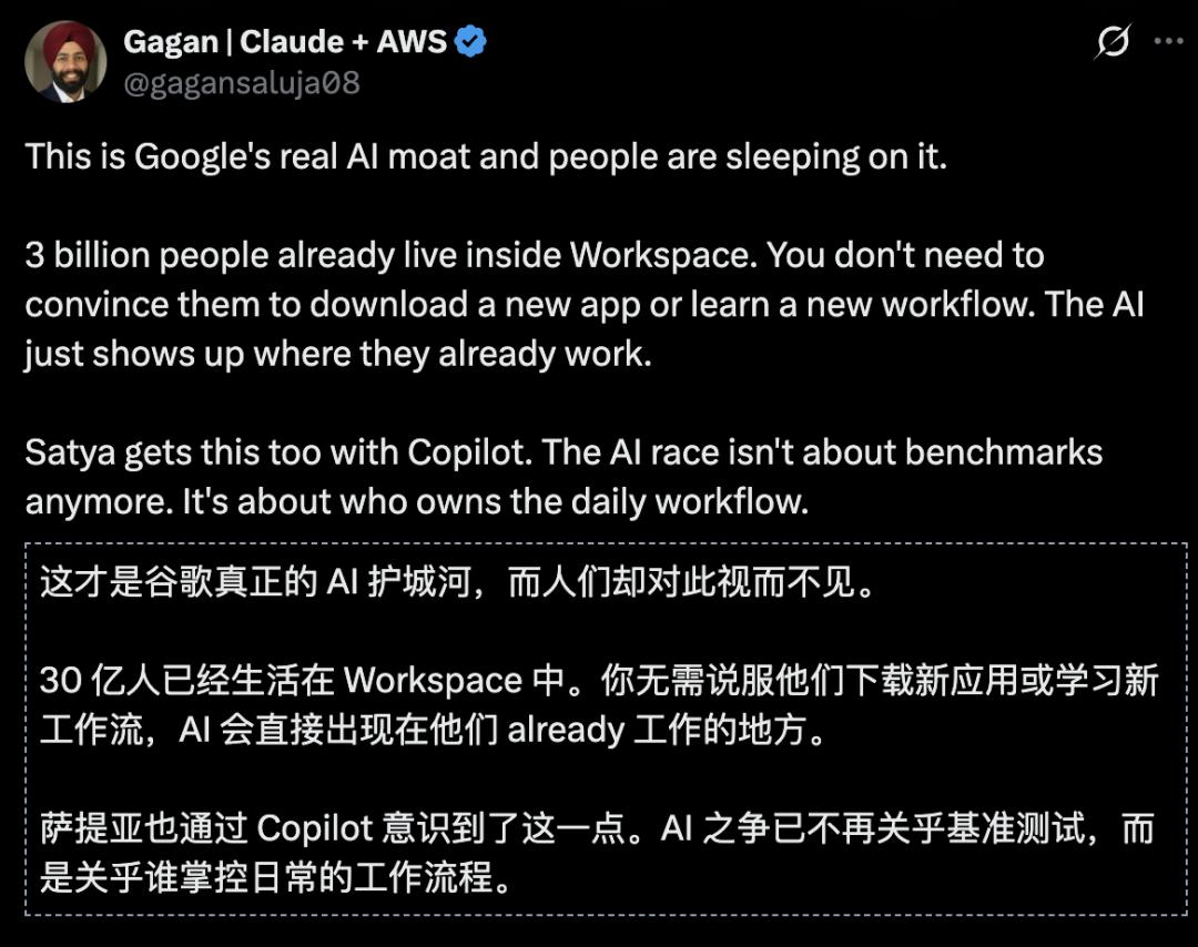 网友直言:3亿人已经生活在Workspace中,这才是谷歌真正的AI护城河!