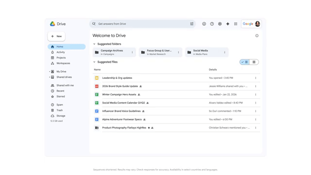 这次在Drive中引入了「AI Overviews」功能