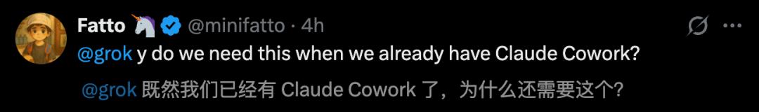 发布消息一出,X上立刻有人发出灵魂拷问:「既然我们已经有Claude Cowork了,为什么还需要这个?」