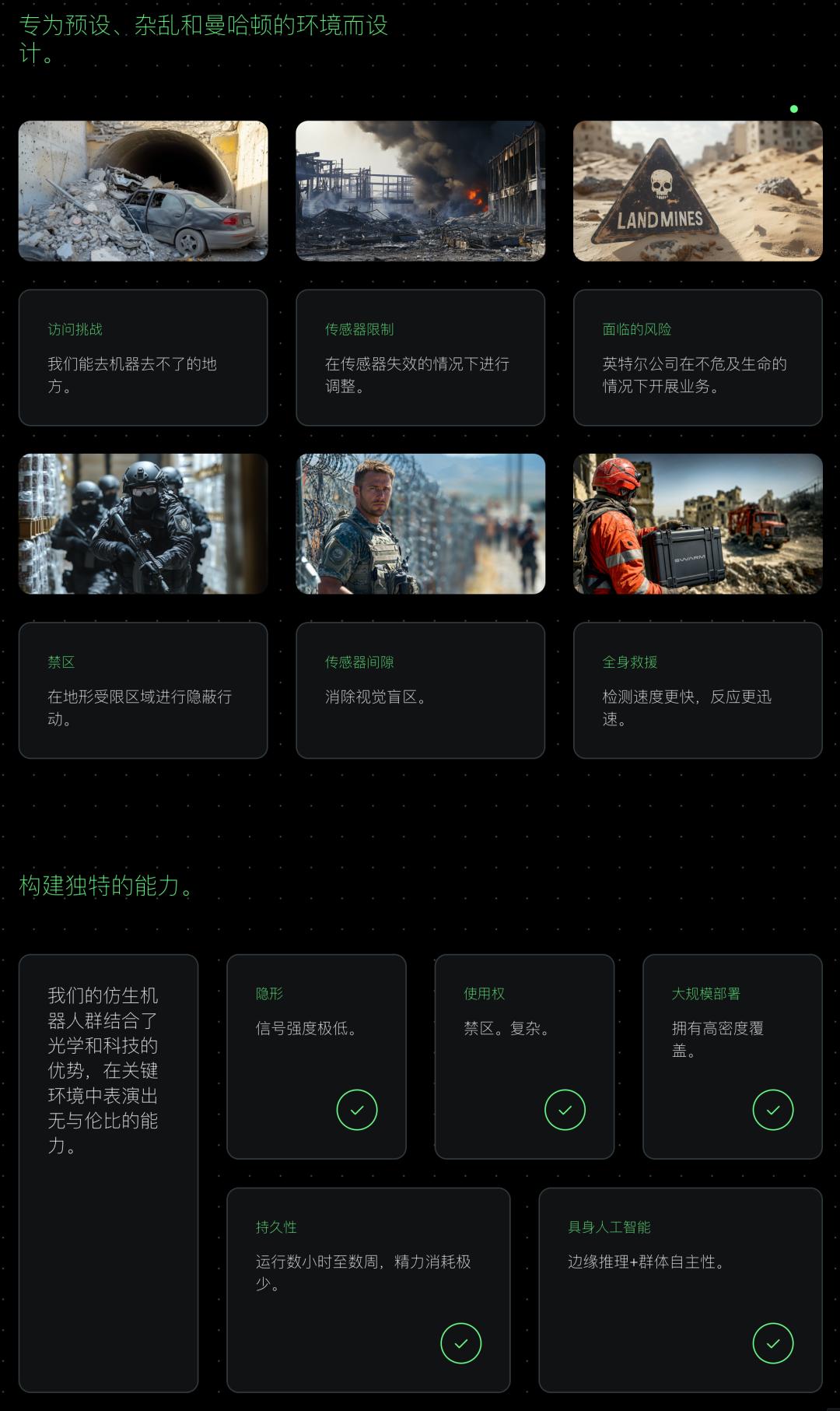 公司公开材料里写得很明确:他们的系统面向的是 GPS-denied、Cluttered、Inaccessible 的环境,也就是信号受限、地形复杂、普通机器人难以通行的地方。