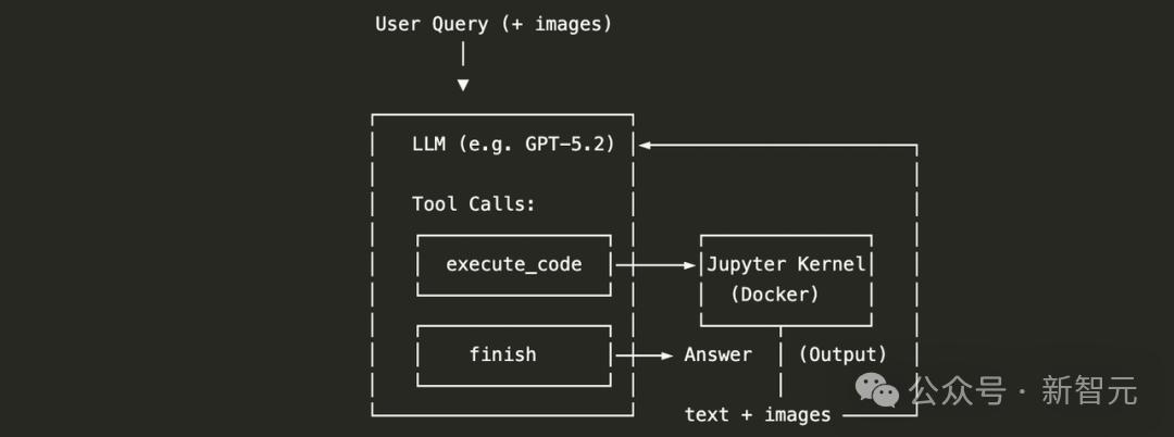 UniPat AI构建了一个极简的视觉智能体框架——SWE-Vision,让模型可以编写并执行Python代码来处理和验证自己的视觉判断。