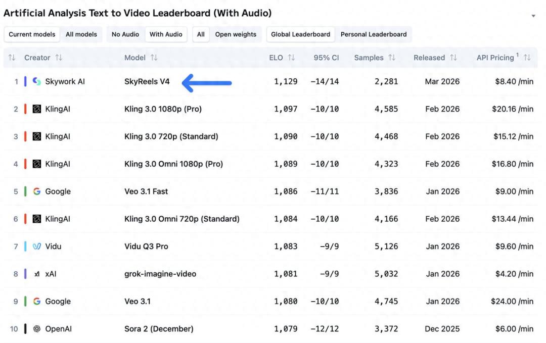 SkyReels V4不只是更强了,它已经开始改写全球视频模型的排位。