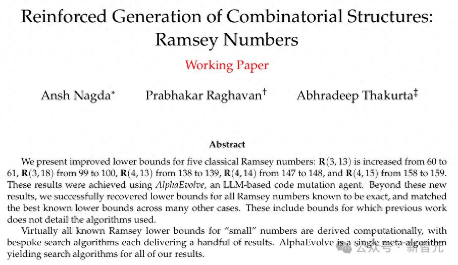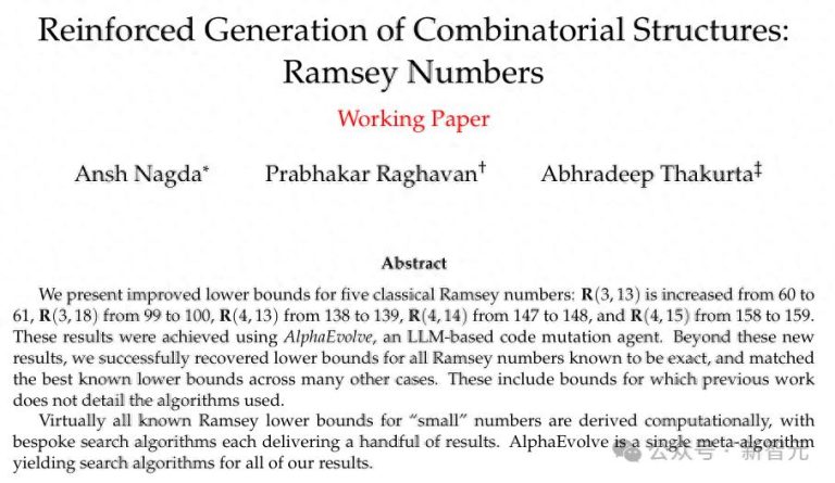 而这次,DeepMind三名研究发出论文,宣布用AlphaEvolve一次性刷新了5个经典拉姆齐数的下界。