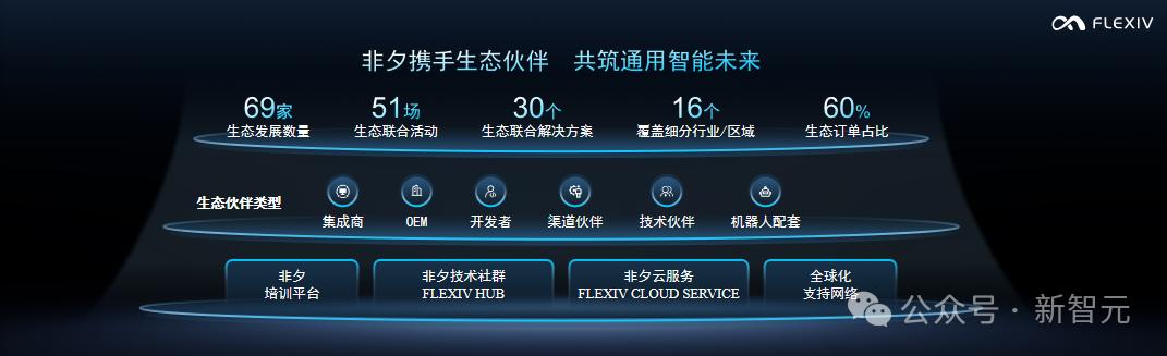 发布会最后,非夕晒出了生态成绩单:69家正式生态伙伴,覆盖16个细分行业,30个联合解决方案,60%的生态订单占比。
