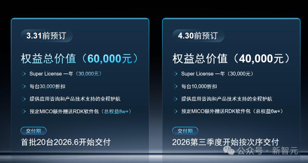这不仅是一份针对开发者和合作伙伴的专属权益,更是具身智能时代的「黄金入场券」:参与预定的伙伴将获得专属价格权益、深度技术支持以及全国首批货源的优先配额。