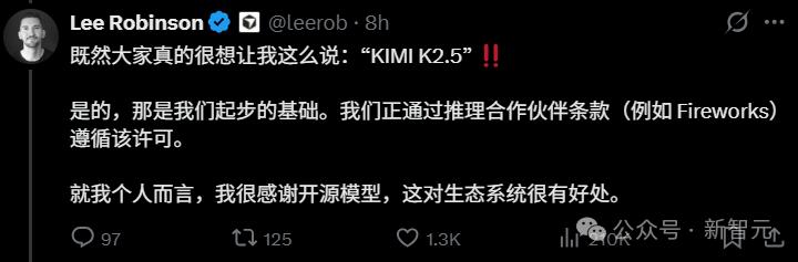 数据和实力之外,这场Cursor风波还意外地给K2.5送上了一波全球级的信用背书。