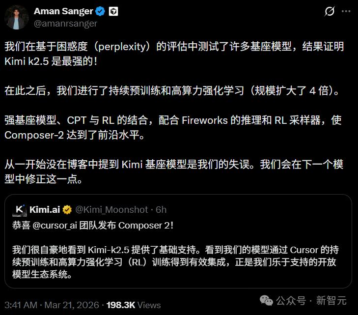 参考资料:https://x.com/fynnso/status/2034706304875602030https://x.com/aakashgupta/status/2035003184192630985https://x.com/leerob/status/2035035355364081694https://x.com/MillionInt/status/2033393130201059515https://x.com/karpathy/status/2033400893346107835https://x.com/elonmusk/status/2034941631871455262https://x.com/Yuchenj_UW/status/2035012260008272007https://blog.cloudflare.com/workers-ai-large-models/https://cursor.com/cn/blog/composer-2
