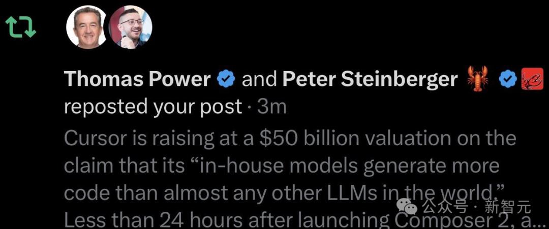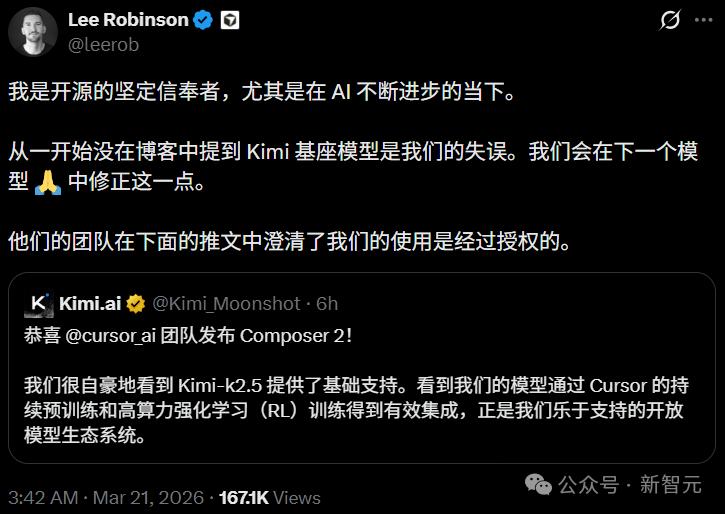 【新智元导读】大瓜惊爆AI圈:昨天Cursor新模型刚刚封神,24小时内却被扒是套壳Kimi?全网秒变吃瓜现场,马斯克、龙虾之父都来围观了。这一次,中国开源模型,真的上大分了!