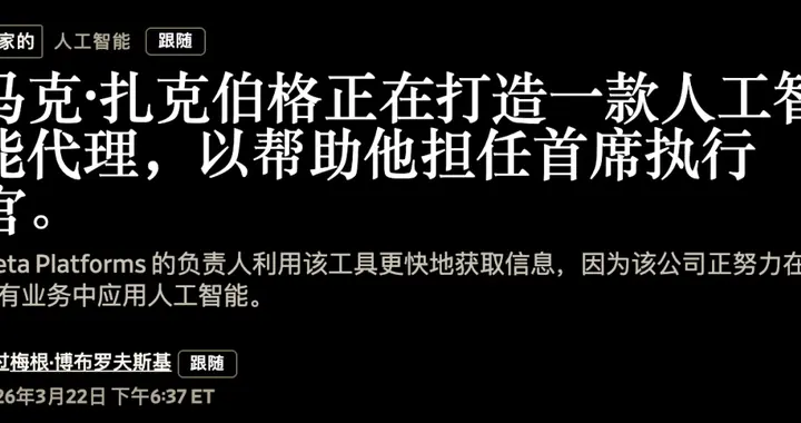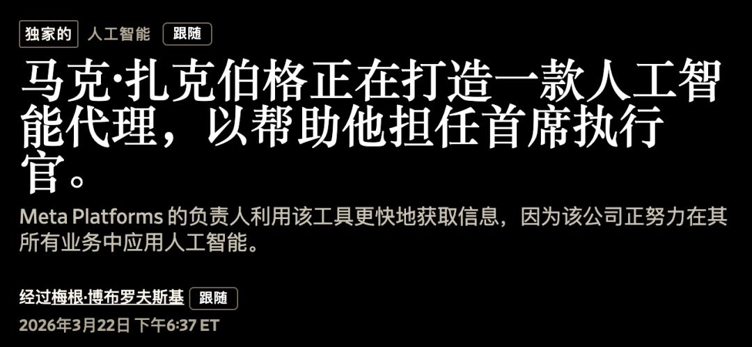 《华尔街日报》近日报道,扎克伯格正在 Meta 内部悄悄开发一个「CEO Agent」。