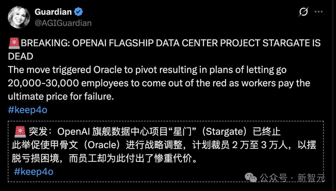 雄心勃勃的算力投资计划「星际之门」(Stargate)项目已终止。