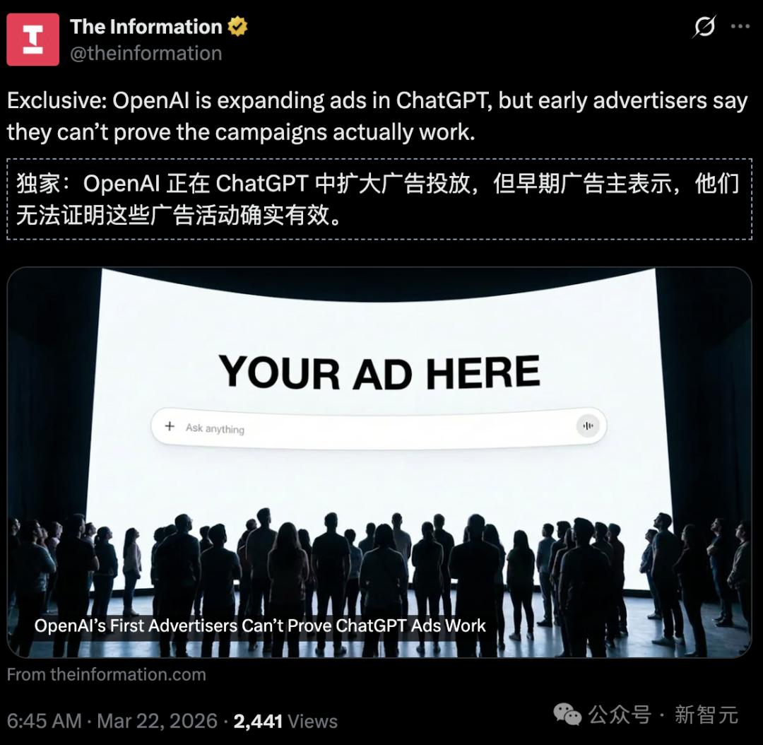 据报道,首批ChatGPT广告也没有得到广告主的信任。