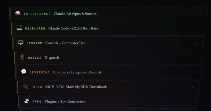 最棒的是:你可以直接从手机给Claude发消息,让它在你的电脑上干活!过去一周,Anthropic推出了9项功能,逐步构建出一个完全自动化的数字人。