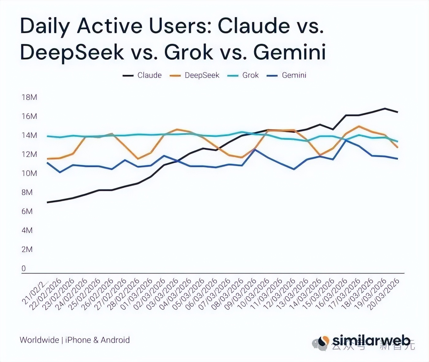 据统计,Claude日使用量跃居全球第二,仅次ChatGPT,超过Gemini等对手,Anthropic加速打开消费市场。