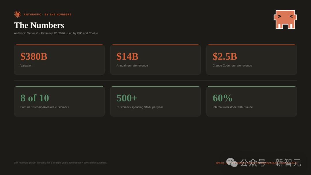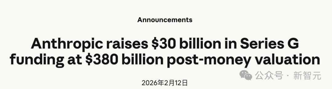 2月12日,Anthropic完成了广受关注的Series G融资:募资300亿美元,对应估值3800亿美元。本轮由GIC与Coatue领投,微软与英伟达等也参与跟投。