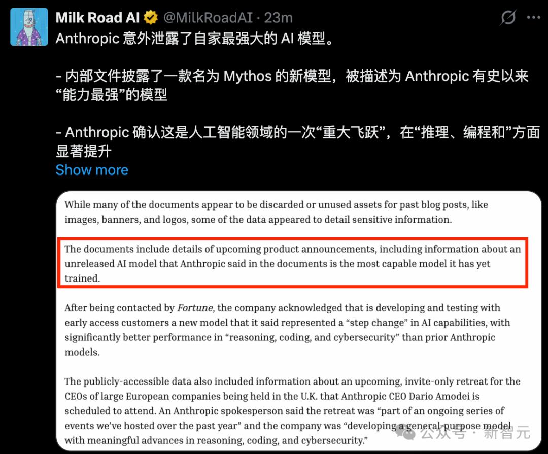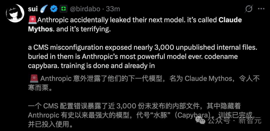 【新智元导读】Opus之后,绝密Claude爆出!就在刚刚,顶配Claude Mythos全网泄露,被称为有史以来「最强模型」,编程、推理全面超越。