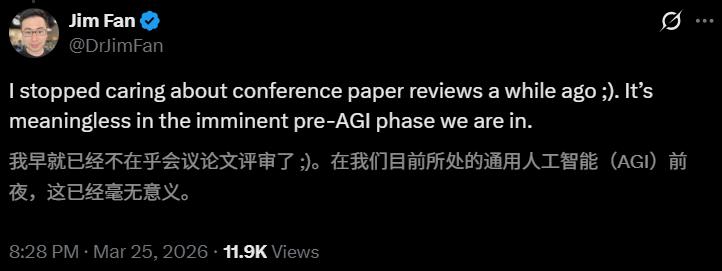 我早就已经不在乎会议论文评审了。在我们目前所处的AGI前夜,这已经毫无意义。