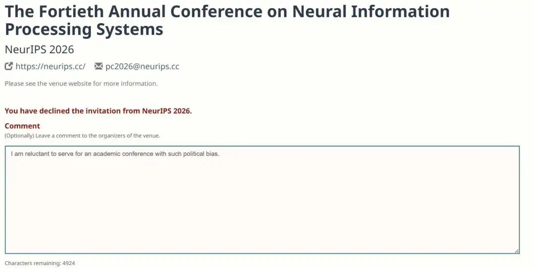 而真正让NeurIPS疼的是接下来发生的事——学者们开始批量拒绝邀请。