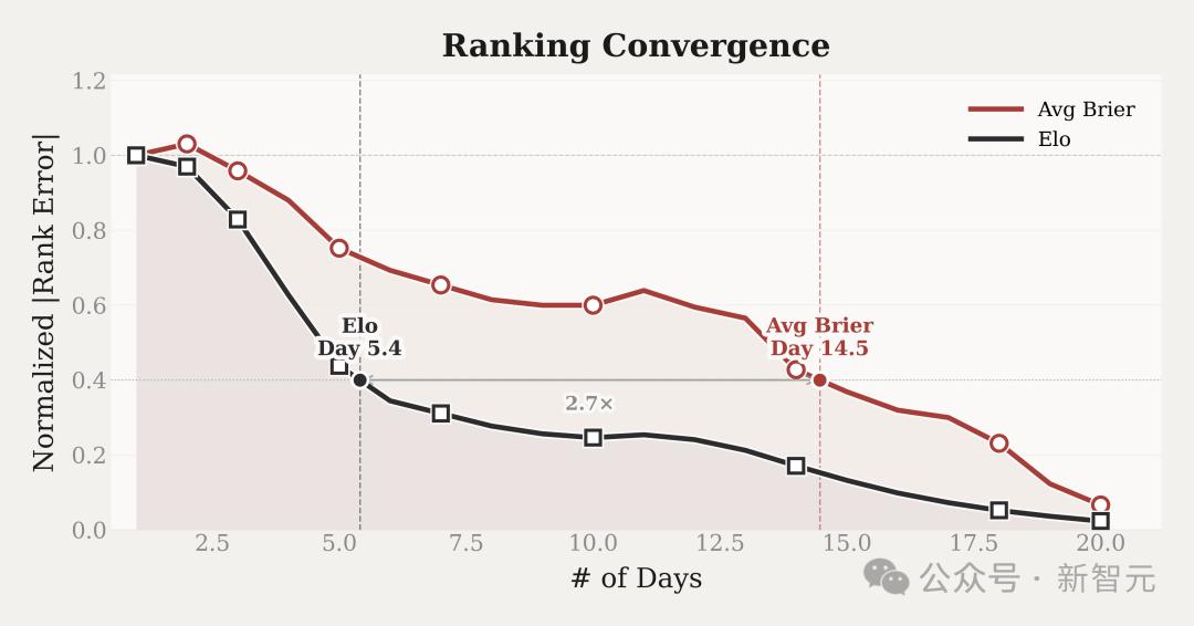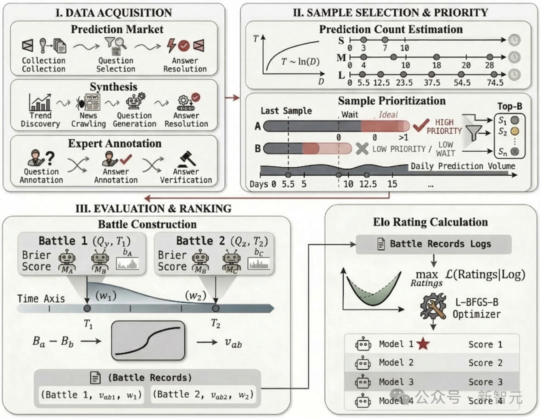 这是解决时序不对称问题的关键环节。评测使用point-aligned Elo机制:严格只比较「同一道题、同一预测时间点」的结果。所有参赛模型在完全相同的信息上下文下对决,公平性由此建立。