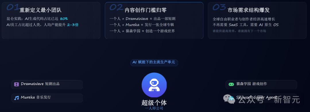 想象一下,一个人加DramaWave就能出品一部短剧,加Mureka就能发行一张全球专辑,加猫森学园就能创造一个游戏世界。