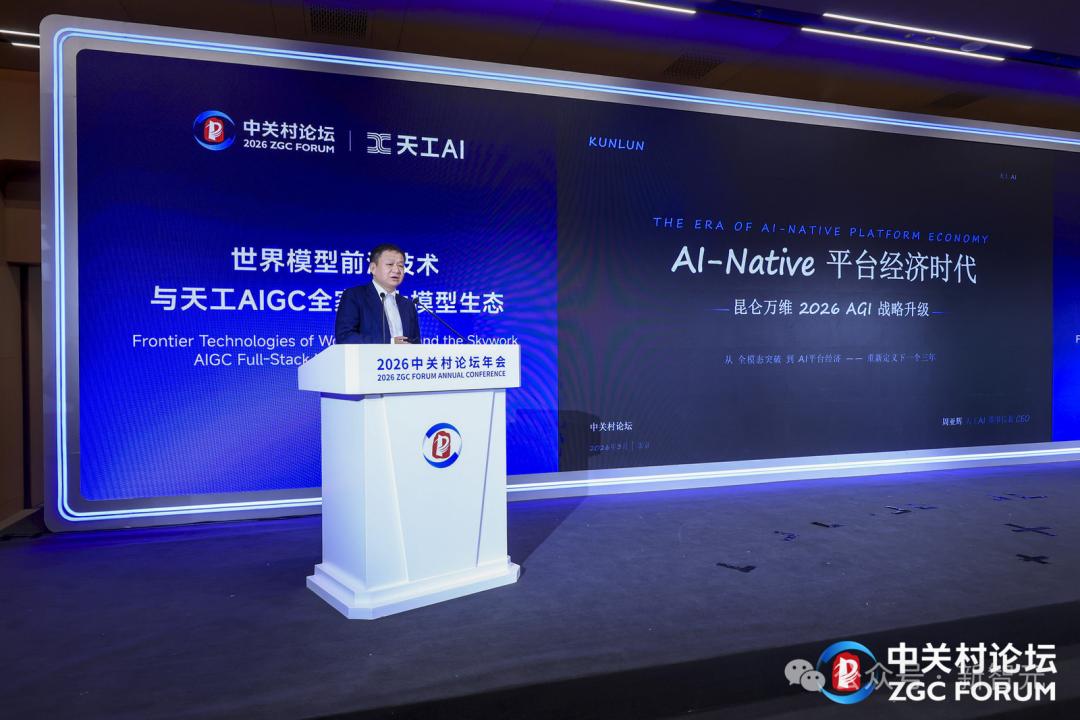 在同一场发布会上,天工AI董事长兼CEO周亚辉发布了2026 AGI战略,核心是「3+1」布局——