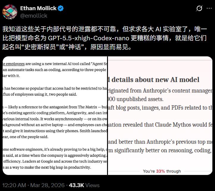 我求求你们这些实验室了,唯一比把模型命名为GPT-5.5-xhigh-Codex-nano更糟糕的,就是给它们取名Agent Smith或Mythos!